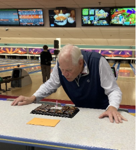 Another fun day at Nutmeg for 10 of us. We were hoping for more bowlers, given that we celebrated another milestone birthday…this time #80 for Alex Garnett (see photos). Happy birthday, Alex, and we look forward to #85. I should also highlight that birthday boy had a good day on the lanes with a 495 series, including converting two 3-10 splits.